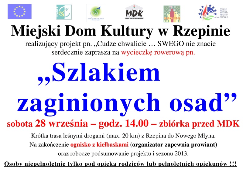 Koło Regionalistów i Miejski Dom Kultury w Rzepinie zapraszają na podsumowanie siódmego sezonu działalności miłośników wycieczek po okolicy. Okazją będzie rowerowa wycieczka "Szlakiem zaginionych osad", w sobotę 28 września o godz. 14.00.